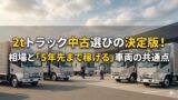予算を抑えるなら、「大手運送会社のリースアップ車両」を狙うのが定石です。これらは自社整備工場や契約工場で過剰なほど整備されているケースが多く、ハズレを引く確率を大幅に下げられます。